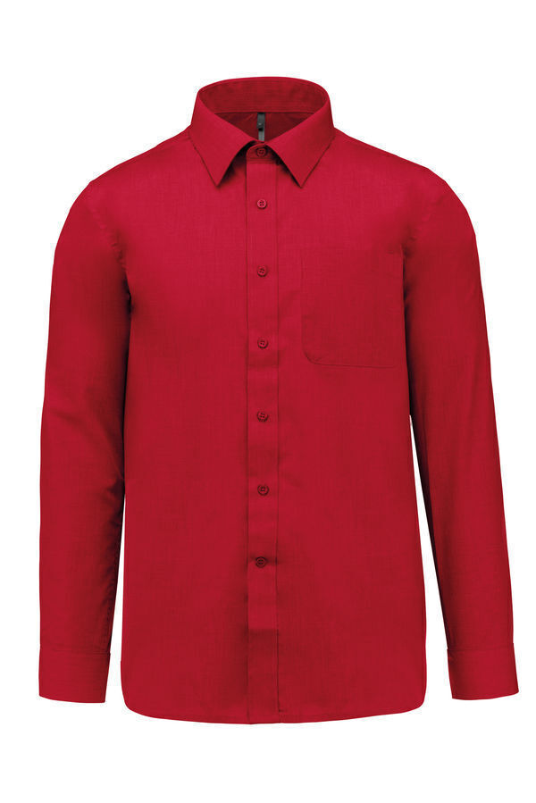 Chemise homme. Col avec pointe de col baleinée. Boutons ton sur ton. Poche poitrine côté gauche à angles arrondis. Empiècement dos double. Poignet réglable à angles arrondis avec patte de manche capucin boutonnée. 2 boutons de rappel. Bas arrondi. Finition coutures rabattues.
