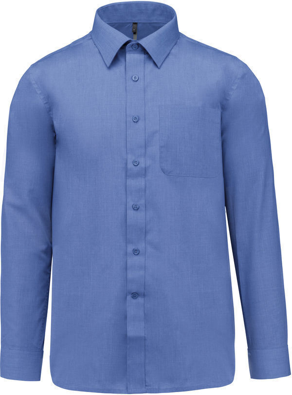 Chemise homme. Col avec pointe de col baleinée. Boutons ton sur ton. Poche poitrine côté gauche à angles arrondis. Empiècement dos double. Poignet réglable à angles arrondis avec patte de manche capucin boutonnée. 2 boutons de rappel. Bas arrondi. Finition coutures rabattues.