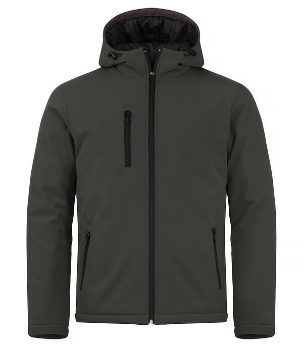 Softshell homme 3 couches matelassée. Capuche avec cordons de serrage élastiqué et stoppeurs. Fermeture devant par zips SBS retournés. Poche poitrine zippée. 2 poches basses zippées. Poche intérieure. Ouverture intérieure zippée pour faciliter le marquage. | Imperméable, respirant, coupe-vent. WP 5K.