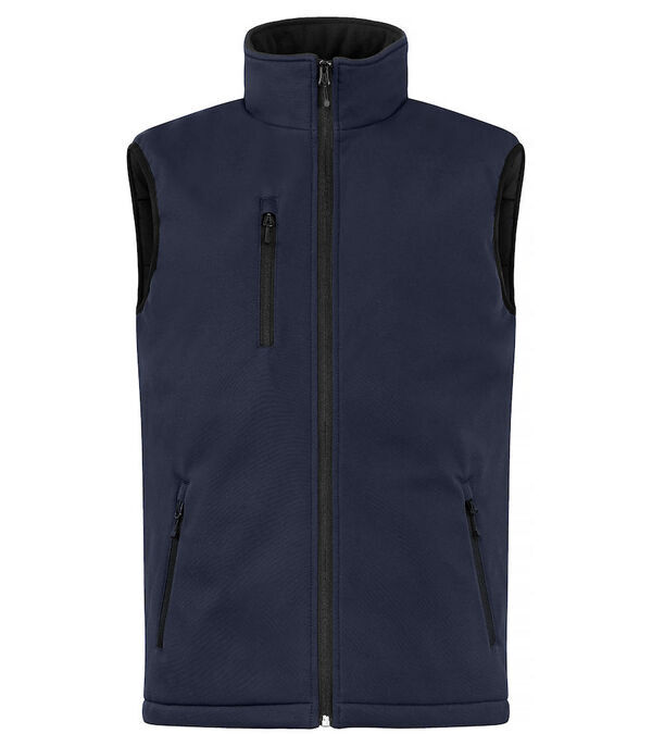 Bodywarmer softshell 3 couches matelassée. Fermeture devant par zips SBS retournés. Coupe vent. Poche poitrine zippée. 2 poches basses zippées. Poche intérieure. Ouverture intérieure zippée pour faciliter le marquage. | Imperméable, respirant, WP 5K.