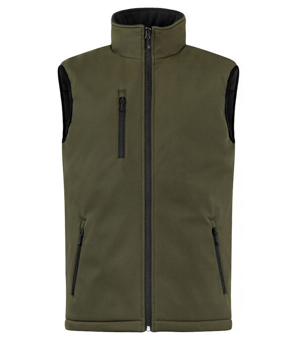 Bodywarmer softshell 3 couches matelassée. Fermeture devant par zips SBS retournés. Coupe vent. Poche poitrine zippée. 2 poches basses zippées. Poche intérieure. Ouverture intérieure zippée pour faciliter le marquage. | Imperméable, respirant, WP 5K.