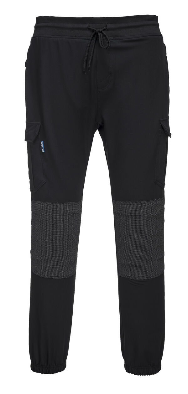 Pantalon type jogging slim fit. Ceinture côtelée avec cordon de serrage. Gousset d’entrejambe. 5 poches, dont poches cuisses type cargo. Boucle en D. Les genoux préformés. Protège-genoux double couche. | E.J. : 78 cm.
