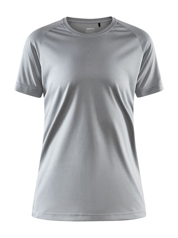 T-shirt d'entraînement femme à col rond. Manches courtes. Coutures latérales incurvées à l’avant. Doux et fonctionnel. Logo milieu dos.
