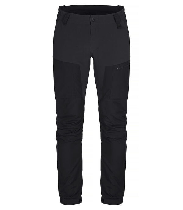 Pantalon homme bi-matière. Ceinture élastiquée et fermé par bouton. Deux poches. Genoux préformés avec poches genouillères. 2 poche zippées. Une poche zippé au dos. Bas de jambe resserrable par velcros et élastiques. E.J. : 85 cm.