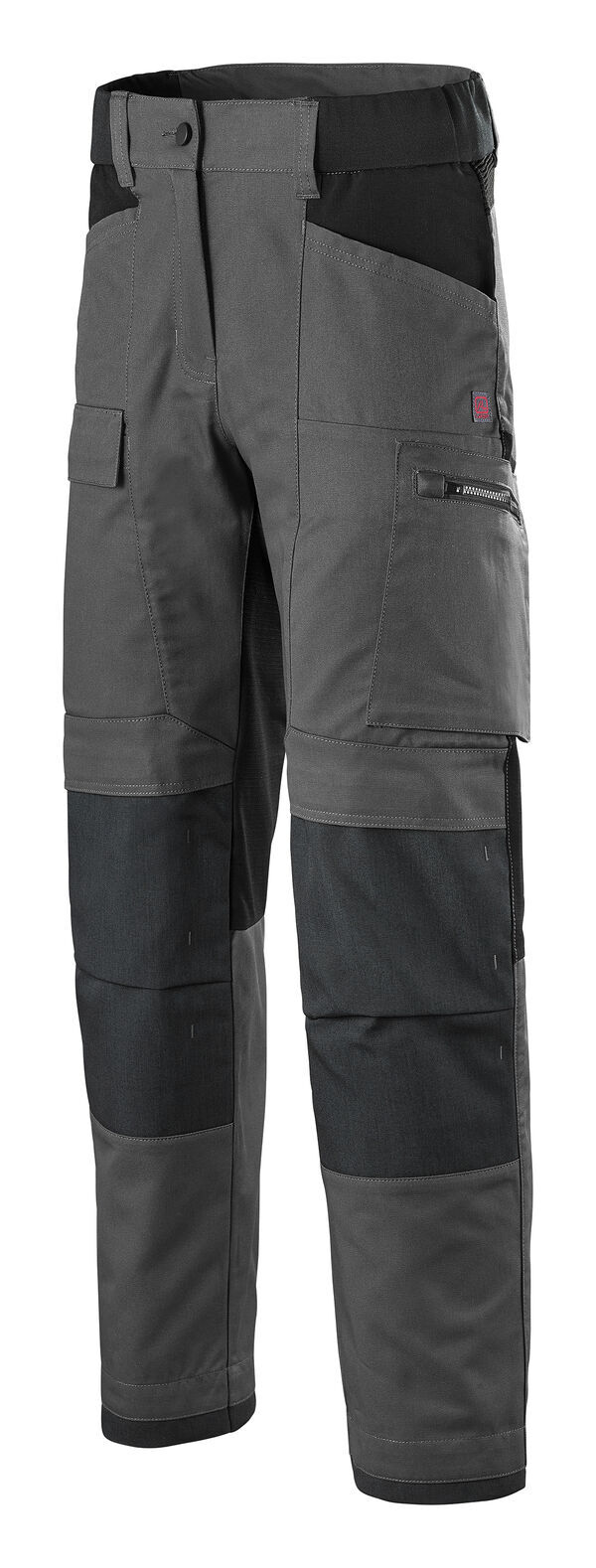 Pantalon bi-matière femme avec ceinture ergonomique, insert en bord-côte, rehausse lombaire en maille 3D extensible. 2 poches italiennes fond de poche en Cordura®. Arrière de la cuisse et insert d'aisance à l'entrejambe en Ripstop stretch Cordura®. Poche cuisse droite avec rabat fermé par Velcro®, gauche type cargo avec soufflet en Cordura® et fermée par zip, poche mètre avec bas volant en Cordura®. Poches genouillères préformées et renforts de bas de jambes en Cordura®. | Mercerie tout plastique. Coupe ajustée. E.J. : 78 cm (+5 cm).