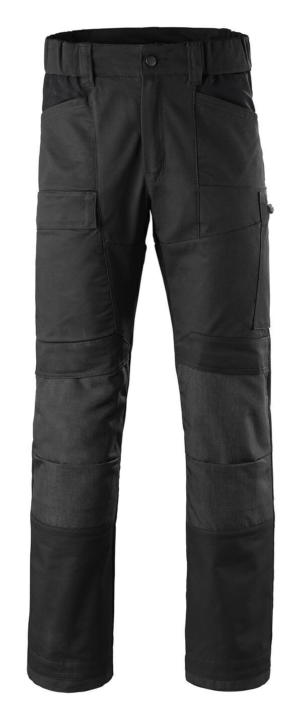 Pantalon bi-matière homme. Ceinture élastiquée aux côtés. Insert lombaire en bord-côte extensible. 2 poches italiennes. Fond de poche, arrière de la cuisse et insert d'aisance à l'entrejambe en Ripstop stretch Cordura®. Côté droit : poche cuisse fermée par rabat avec auto-agrippant. Poche mètre avec bas volant en Cordura®. Côté gauche : poche type cargo avec soufflet en Cordura® fermée par zip. Poches genouillères préformées, renforts bas de jambes et ourlet en Cordura®. Rehausse dos. | Mercerie tout plastique. Coupe ajustée. E.J. : 78 cm (+ 5 cm).