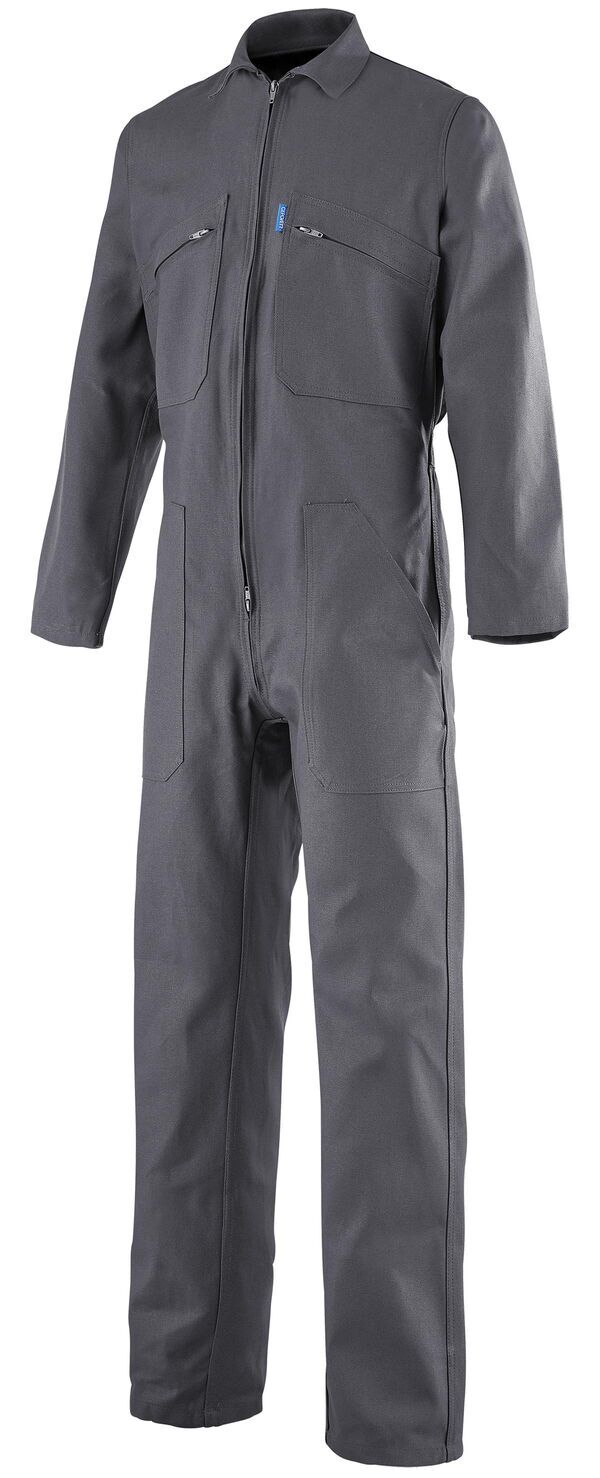 Combinaison 1 zip. Fermeture milieu devant par fermeture à glissière. Poches fermées par fermeture à glissière. Soufflets dos. Élastique dos. Poche mètre. | E.J. : 82 cm.