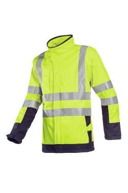 Softshell homme à col droit. Fermeture à glissière sous rabat avec bande auto-agrippante. 1 poche poitrine avec fermeture à glissière. 2 poches enfilées. 1 passant pour détecteur de gaz. Manches montées. Rétrécissement des manches par fermeture auto-agrippante. Bande rétroréfléchissantes retardatrice de flamme (50 mm). | Longueur dos : 77 cm.