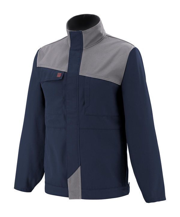 Blouson. Col montant. Collerette de marquage. Empiècements devant et dos obliques. Devant fermé par fermeture à glissière sous patte maintenue par pressions cachées. Poche poitrine droite incrustée sous rabat fermé par Velcro® cachés. Poche poitrine gauche ouverture verticale fermée par Velcro® caché. Poches basses verticales. Bas de manches réglables par pression. Pattes de serrage ceinture réglables par pressions cachées. Ceinture droite. Mercerie tout plastique. Surpiqûres contrastées.