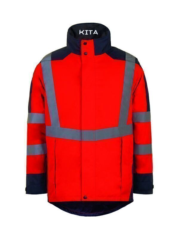 Parka haute visibilité. Col montant doublé polaire. Fermeture à glissière double curseur sous double rabat pressionné avec gouttière. Capuche amovible avec visière réglable par cordon de serrage. 1 poche Napoléon avec support carte d'identification, 1 poche intérieure, 2 poches basses avec rabat et fermeture à glissière. Manches préformées. Bas de manches avec pattes auto-agrippantes. Dos protège-reins. Coutures étanchées. Trappe d'accès pour le marquage. | Bande microbille rétroréfléchissante de largeur 50 mm.