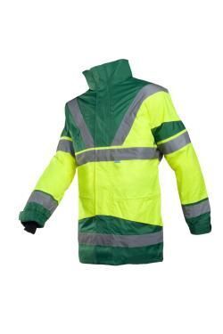 Parka haute visibilité à blouson amovible. Veste : multipoches, dont une Napoléon. Manches kimono. Blouson : Multiples poches. Manches amovibles, poignets coupe-vent tricot à l’intérieur des manches. | Longueur dorsale : 85 cm.
