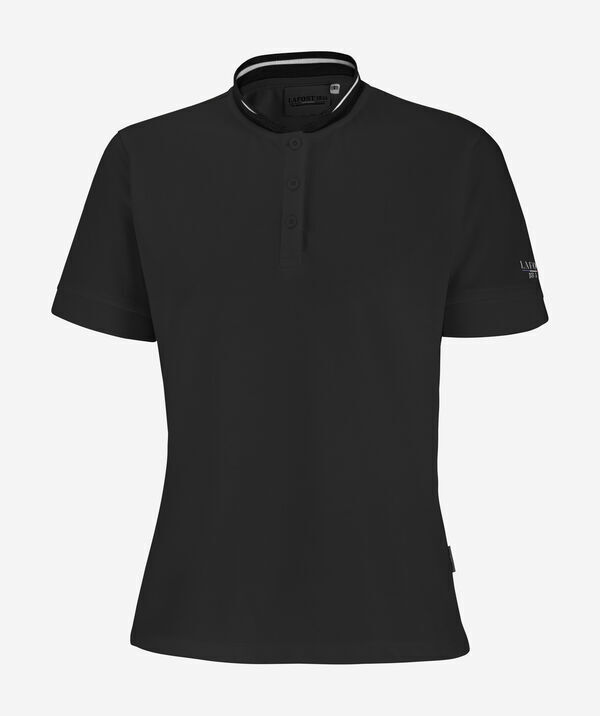 Polo femme à col officier. Patte de boutonnage 3 boutons. Col et bas de manche en bord-côte. Fentes aux côtés. Broderie LAFONT 1844 sur manche gauche.