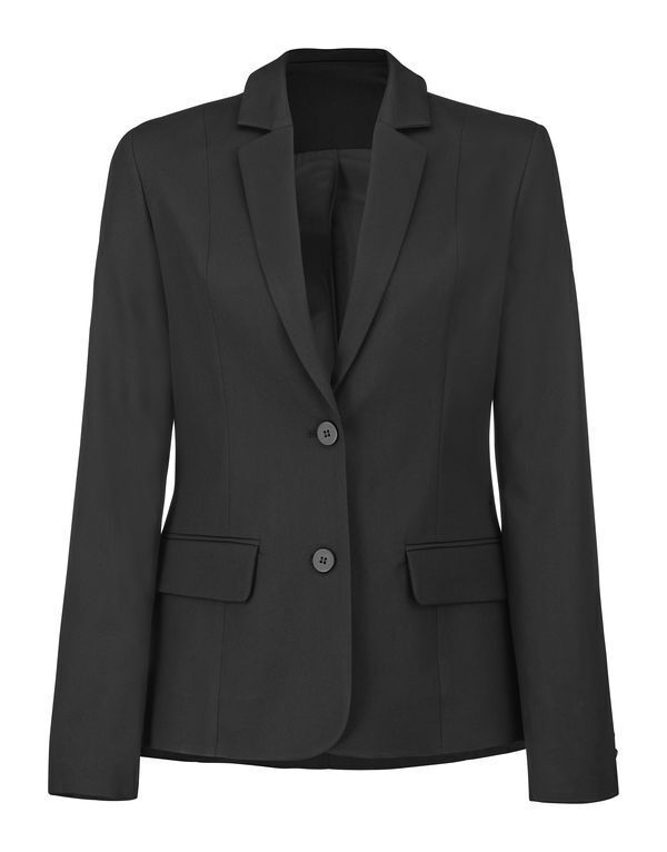 Veste femme. Col tailleur. Fermeture 2 boutons. Cintrée par découpes bretelles. Poches basses à double passepoil avec rabat. Manches longues, finition 3 boutons sans boutonnière. 2 poches intérieures. Entièrement doublée.