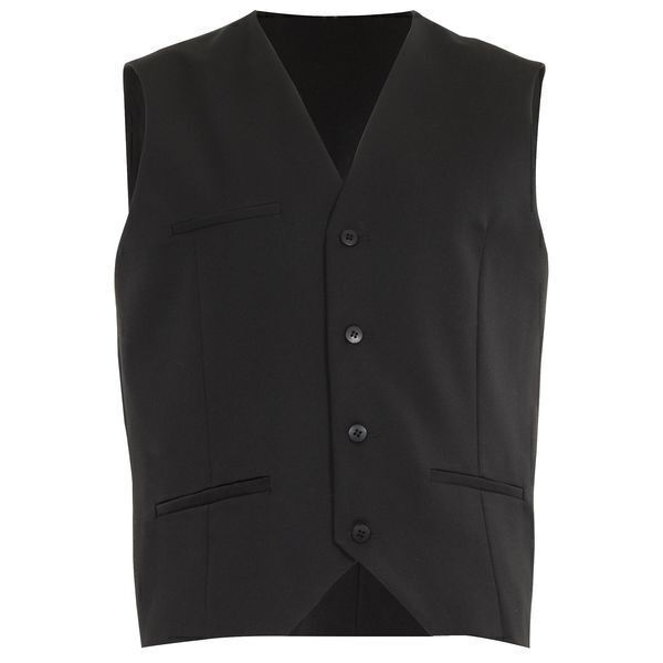 Gilet homme. Fermeture 4 boutons. Poche poitrine passepoilée côté droit, 2 poches basses passepoilées.