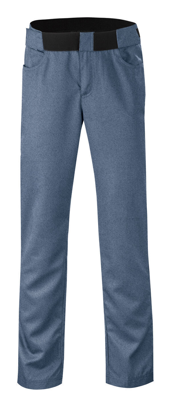 Pantalon mixte 5 poches. Ceinture avec élastique transfert d’humidité. Taille ajustable avec 2 pattes à élastique auto-agrippant à la ceinture. 2 poches cavalières avant avec poche ticket. 2 poches plaquées dos. Bas de jambe réglable sur 3 positions par système de pressions. E.J. : 82 cm.