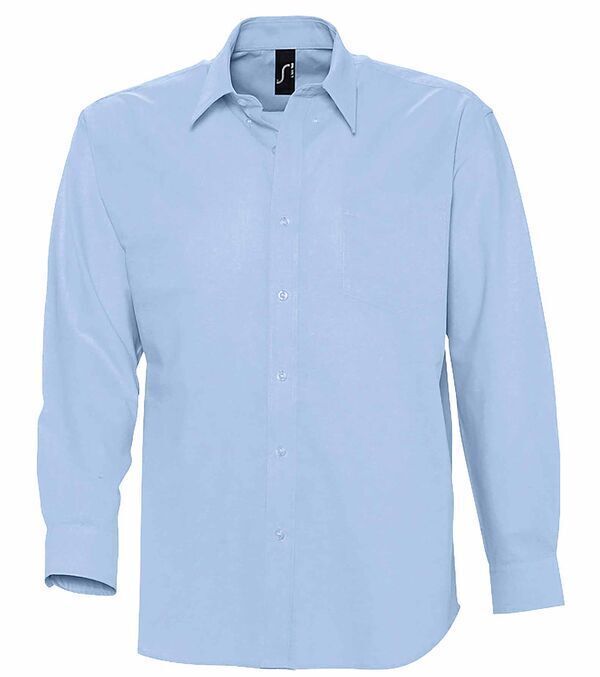 Chemise homme. Col chemise à 2 boutons. Fermeture milieu devant par 7 boutons ton sur ton. 1 poche poitrine. 2 plis côté au dos. Manches longues, poignets avec 2 boutons ajustables et pattes capucin. Oxford. Coupe droite.