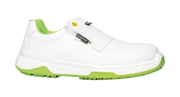 Mocassins de sécurité mixte. Tige en microfibre recyclée hydrofuge. Semelle de propreté MAXI SOFT DUO®. Doublure maille 3D antibactérienne, anatomique et respirante. Embout polymère 200J. Semelle externe PU Biomass BASF®. 0% métal.
