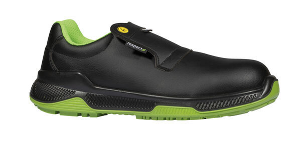Mocassins de sécurité mixte. Tige en microfibre recyclée hydrofuge. Semelle de propreté MAXI SOFT DUO®. Doublure maille 3D antibactérienne, anatomique et respirante. Embout polymère 200J. Semelle externe PU Biomass BASF®. 0% métal.
