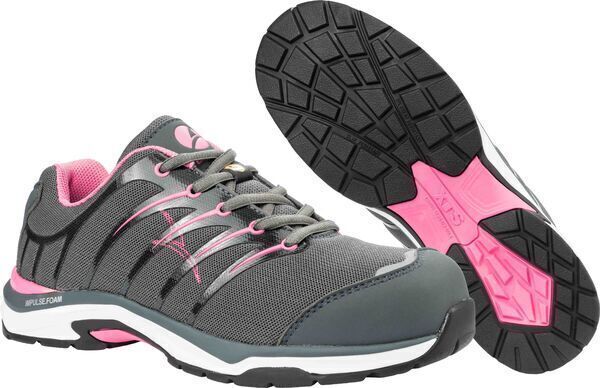 Chaussures de sécurité femme. Tige textile et éléments FITFRAME®. Doublure fonctionnelle respirante. Embout en fibres de verre. Semelle anti-perforation FAP®. Semelle intermédiaire IMPULSE.FOAM®. Semelle externe en caoutchouc XTS TRAIL.