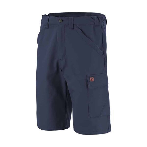 Bermuda de travail, ceinture élastiquée côtés et fermée par bouton. Braguette zippée. 2 poches italiennes. Panneau d'aisance à l'entrejambe. Poche cuisse gauche à soufflet, sous rabat fermé par Velcro® cachés. Collerette de marquage intérieur dos. Poche revolver plaquée au dos. Poche mètre avec bas volant côté droit. | E.J. : 29 cm.