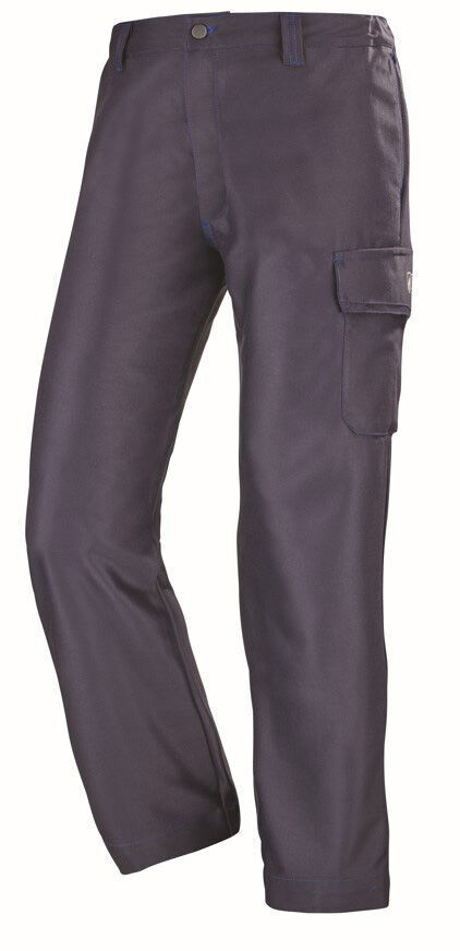 Pantalon ceinture élastiquée côtés et réhausse dos, 5 passants. Braguette zippée. 2 poches insérées dans coutures côtés. Poche cuisse gauche à rabat plaquée, poche dos gauche à rabat plaquée. Finition ourlets bas de jambes. | Transfert FR pictos sur rabat de poche cuisse. Mercerie amagnétique. E.J. : 80 cm (+5 cm).