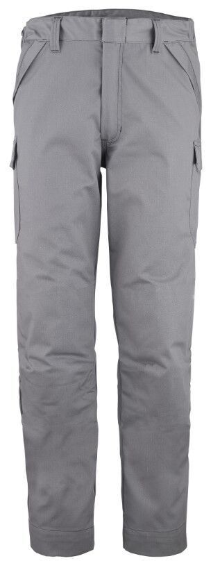 Pantalon, ceinture élastiquée côtés avec réhausse dos, 5 passants. Fermeture centrale par bouton caché et braguette zippée. 2 poches italiennes à rabat fermé par boutons-pression cachés. 2 poches à rabat plaquées et soufflet à l'arrière fermé par boutons-pression cachés. Poches genoux. 1 poche à rabat dos fermé par boutons-pression cachés. Finition bas de jambes par ourlets. | E.J. : 80 cm (+5 cm).
