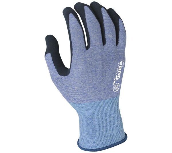 Gants support tricoté sans couture en PET recyclé. Jauge 15. Enduction sur la paume en latex sablé. Poignet tricot élastiqué.