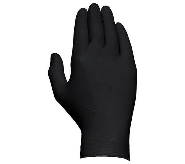 Gants nitrile noir non poudrés. Longueur : 24 cm. Épaisseur : 0,12 mm.