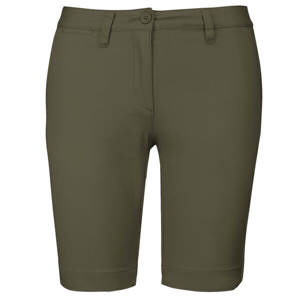 Bermuda chino. Fermeture braguette zippée et bouton cousu. Ceinture avec 5 passants. 2 poches italiennes. 2 poches arrières passepoilées. Finition aux enzymes.