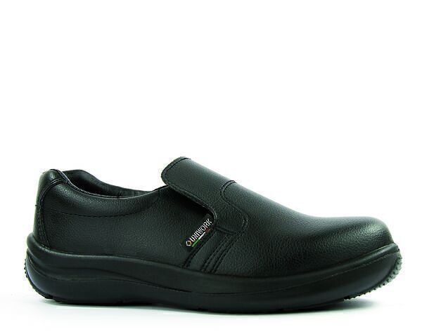Mocassins de sécurité femme avec tige en microfibre hydrofuge. Semelle de propreté GIOVE®. Entièrement doublé, avec doublure non tissée PIGGY® favorisant l'évacuation de l'humidité. Embout acier inoxydable 200J. Semelle externe ODEON® PU2D. Fabrication italienne