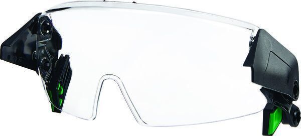 Lunettes transparentes en polycarbonate développées exclusivement pour les casques V-Gard H1. Installation/retrait faciles grâce à son bouton-poussoir : pas besoin d’un porte-écran externe. Système à double pivot.
