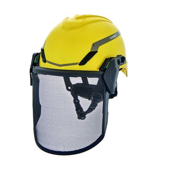 Écran grillagé développé exclusivement pour les casques V-Gard H1. Installation/retrait faciles grâce à son bouton-poussoir : pas besoin d’un porte-écran externe. Système à double pivot.