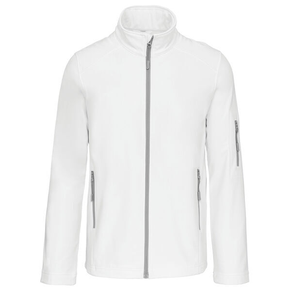 Softshell 3 couches homme. Col montant. Fermeture centrale zippée avec sous-patte et protège-menton. 2 poches basses zippées. Poche sur manche gauche. Doublure micropolaire. | Imperméabilité et respirabilité : 8000/3000.