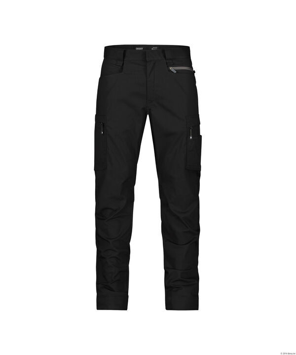 Pantalon multipoches stretch. Ceinture réglable par élastique au dos. 5 passants. 2 boucles de ceinture. Fermeture à glissière et bouton jean caché. Panneau d'aisance à l'entrejambe. 2 poches italiennes et poche zippé avant. 2 poches cuisses avec zip caché par rabat. Poche mètre. Poche téléphone. Porte outils. Poche arrière ouverte. Poche arrière zippée. | Détails rétroréfléchissants. E.J. : 81 cm (+5cm).