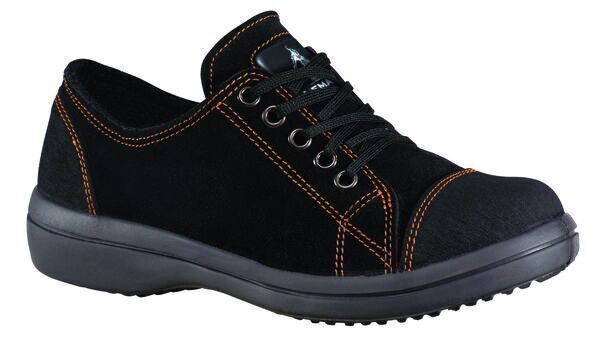 Chaussures de sécurité femme basses. Tige croûte de cuir hydrofuge, finition velours. Doublure textile tridimensionnel micro-aéré. Embout acier 200 J. Insert anti-perforation acier inoxydable.Semelle externe Paraboline PU2D.