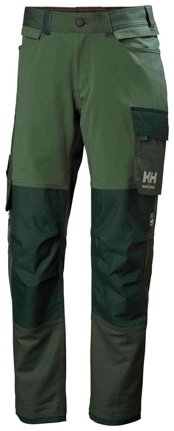Pantalon bi-matière full stretch. Ceinture à larges passants. Boutons en métal recouverts de plastique. Zip pour fixation de la poche HH connect. Entrejambe à soufflet. Poche cuisse avec fermeture. Boucle pour porte-badge. Poche mètre. Genoux et poches genouillères articulées accessibles depuis l'extérieur. Renforts genoux et bas de jambes. | E.J. : 84 cm (+5 cm).