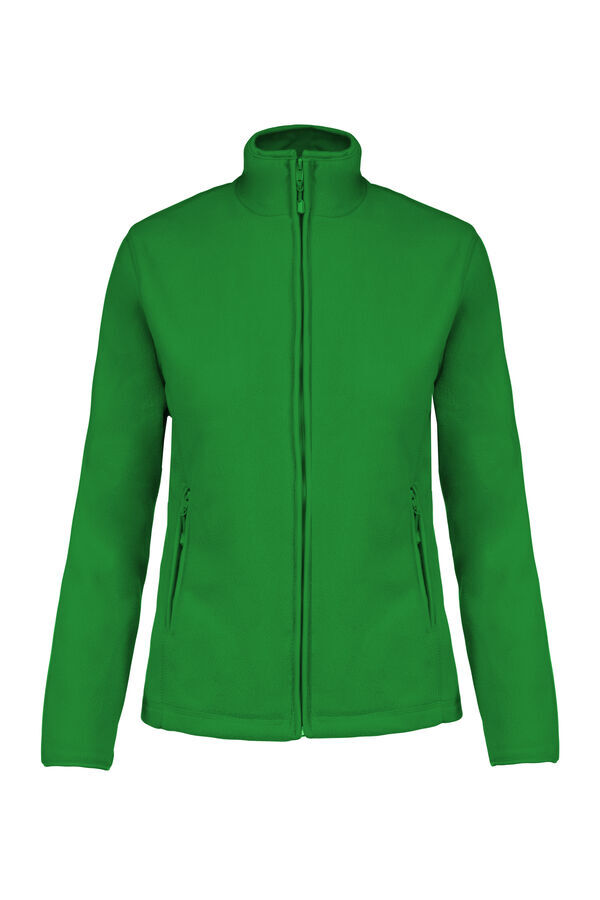 Veste micropolaire femme. Col montant. Fermeture centrale zippée. 2 poches côtés zippées. Biais de finition au col, poignets et zip. | Traitement anti-boulochage. Coupe cintrée.
