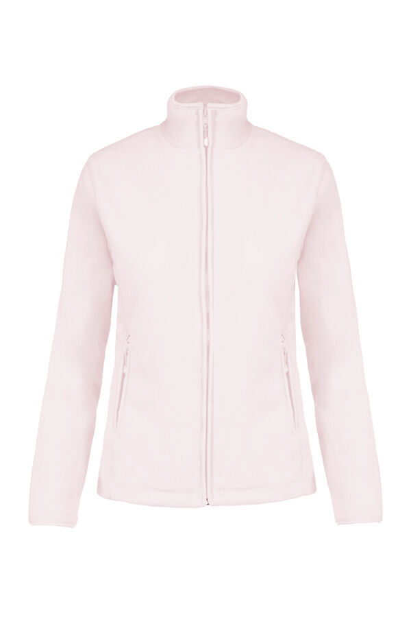 Veste micropolaire femme. Col montant. Fermeture centrale zippée. 2 poches côtés zippées. Biais de finition au col, poignets et zip. | Traitement anti-boulochage. Coupe cintrée.