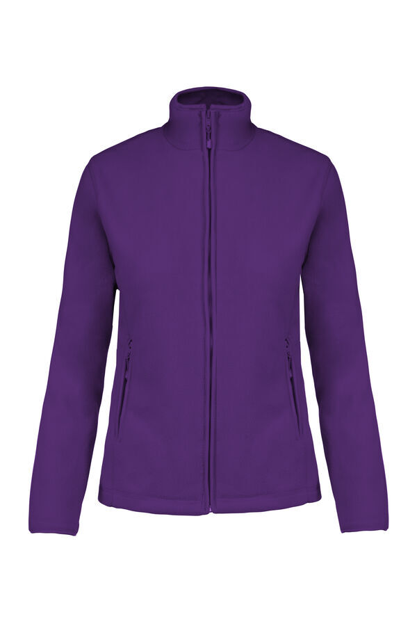 Veste micropolaire femme. Col montant. Fermeture centrale zippée. 2 poches côtés zippées. Biais de finition au col, poignets et zip. | Traitement anti-boulochage. Coupe cintrée.