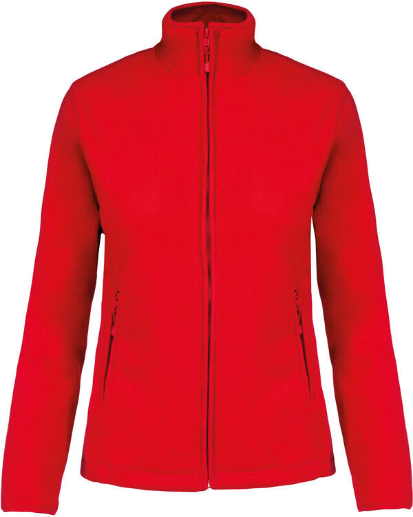 Veste micropolaire femme. Col montant. Fermeture centrale zippée. 2 poches côtés zippées. Biais de finition au col, poignets et zip. | Traitement anti-boulochage. Coupe cintrée.
