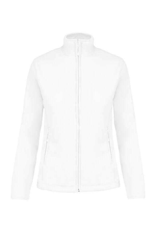 Veste micropolaire femme. Col montant. Fermeture centrale zippée. 2 poches côtés zippées. Biais de finition au col, poignets et zip. | Traitement anti-boulochage. Coupe cintrée.